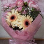 バラ・ガーベラを使って作りました ピンク系で可愛いブーケ風に仕上げました