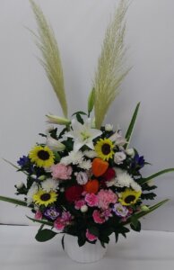 ひまわりを使ったお祝いスタンド花
